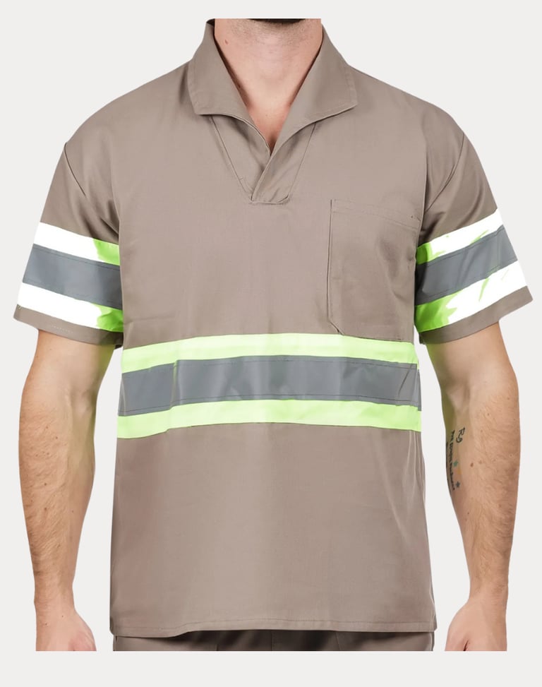 Camisa Profissional em Tecido Brim com Faixa Refletiva