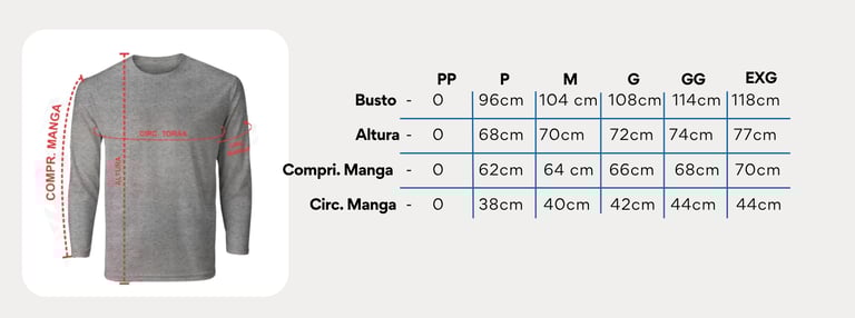 Camiseta Malha PV Manga Longa Gola Redonda