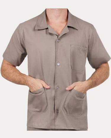 Camisa com gola italiana e fechamento em botão, garantindo conforto, elegância e versatilidade.