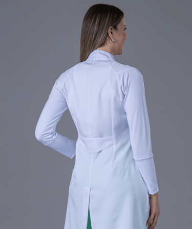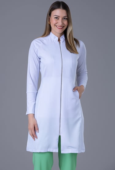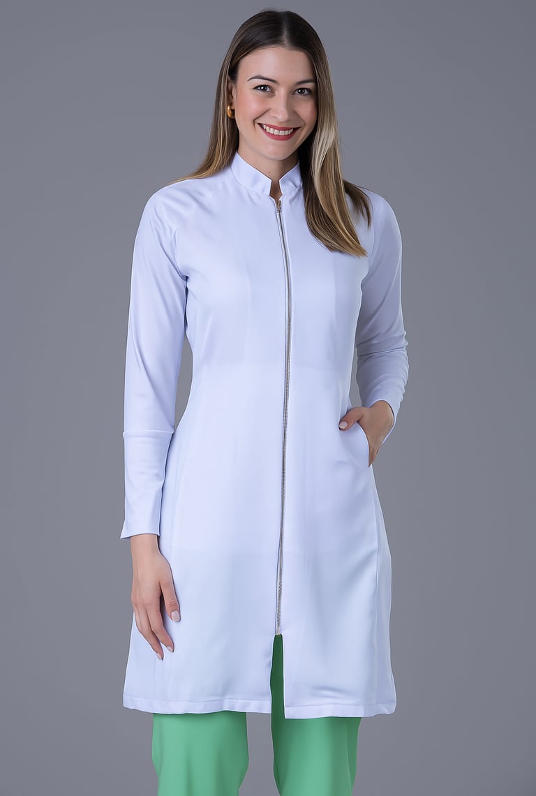 Confeccionado em tecido leve, resistente e de toque suave, o jaleco oferece durabilidade, fácil manutenção e conforto durante todo o dia. O fechamento com zíper frontal proporciona agilidade ao vestir e retirar a peça, além de transmitir um visual moderno e sofisticado.